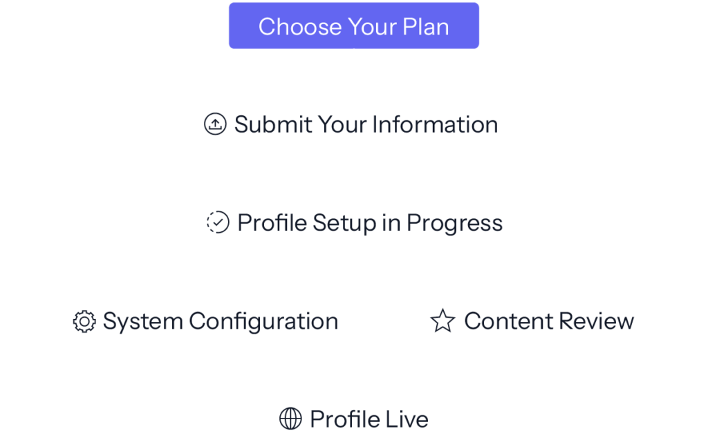 Provide your business details, services, contact information, and key resources through our guided onboarding form. This ensures your profile is built within a consistent and professional framework.